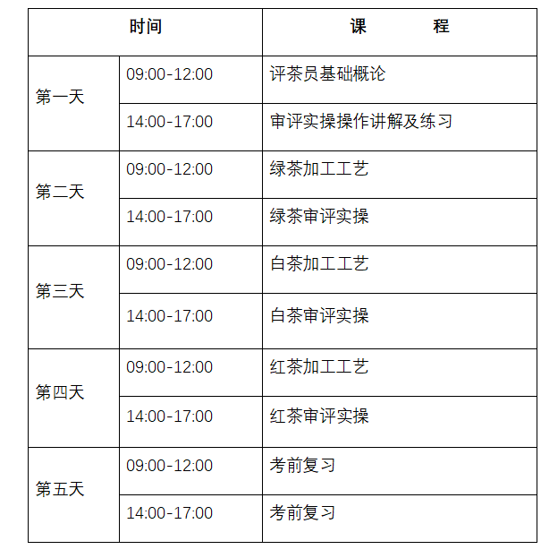 附件:MG冰球突破网站初级评茶师补贴班课程表