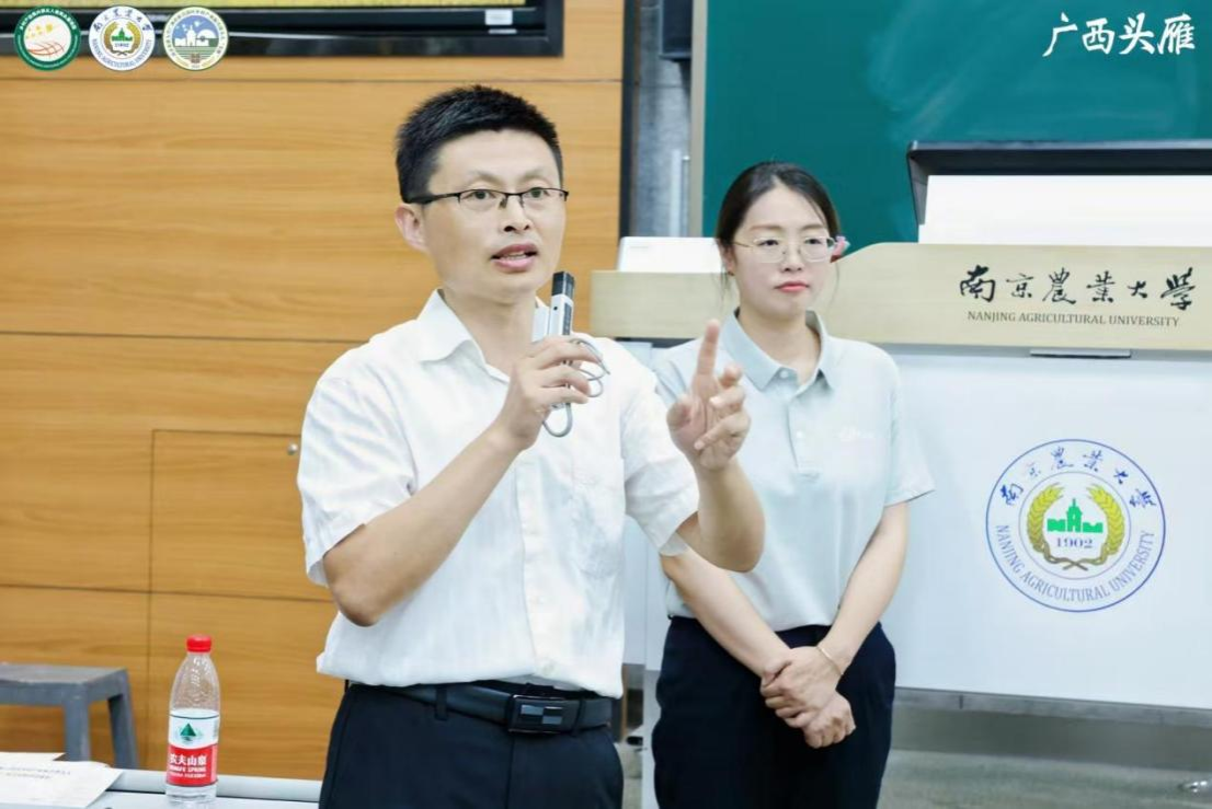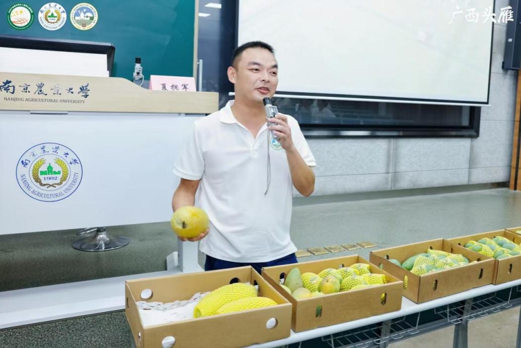 交流后,“头雁”学生、广西田东青唯鲜现代农业专业合作社总经理黄孟走上台前,热情推介家乡的特色农产品芒果。大家一同品鉴,芒果的甘甜化成为联结八桂大地与金陵古都、促进同学情谊的纽带,现场洋溢着温馨与热烈的交流氛围。