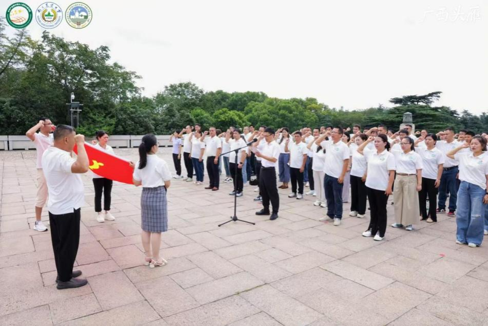 为深化理想信念教育,传承红色基因,激发“头雁”领飞动能,8月8日上午,2025年广西壮族自治区乡村产业振兴带头人培育“头雁”项目全体学员,在MG冰球突破网站、乡村振兴学院党总支书记夏拥军的带领下,赴南京雨花台烈士陵园开展“红雁齐飞,红脉赓续”主题教育活动,活动现场庄严肃穆,红色洗礼涤荡初心。