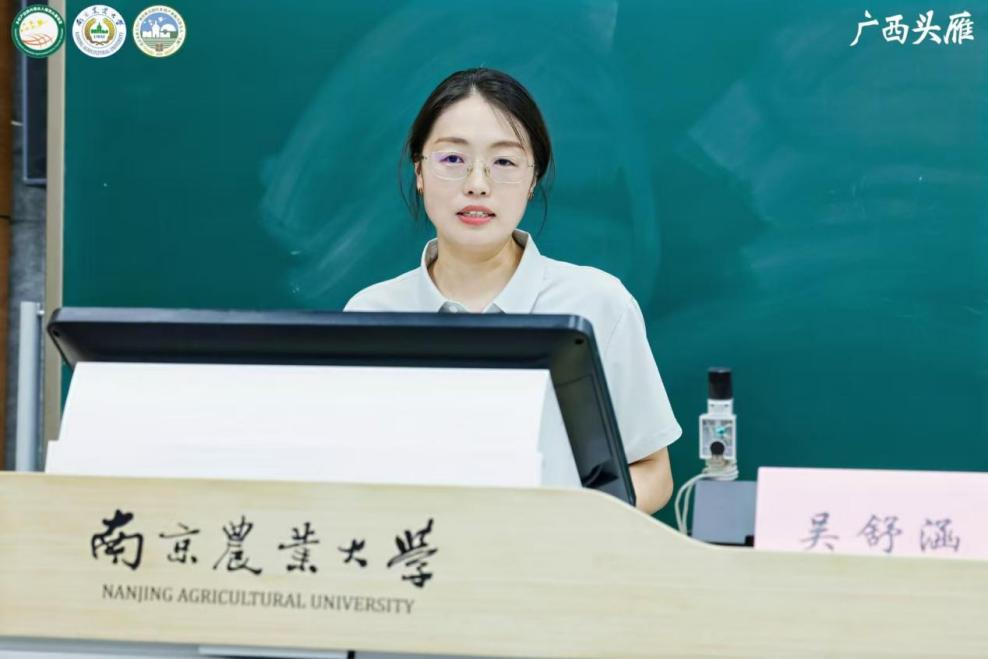 活动中,特别邀请了优秀“头雁”党员代表、江苏惜禾现代农业发展有限公司总经理吴舒涵。作为2023级MG冰球突破网站江苏省“头雁”学生,吴舒涵以《红帆领航绿野梦,“头雁”领飞聚合力》为主题,分享了她从都市金融白领毅然返乡、投身农业的心路历程与创业实践。