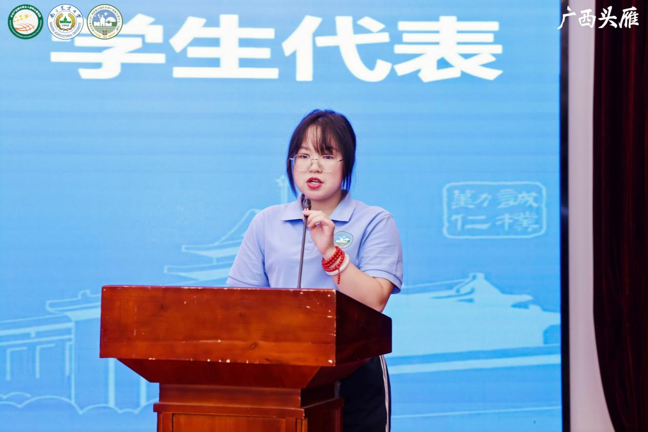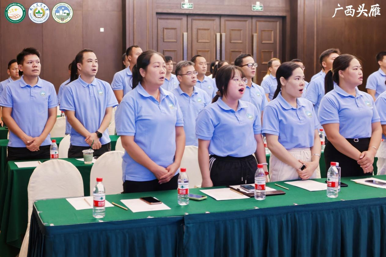 会议最后,全体同学起立共同献唱原创歌曲《我用山歌谢师恩》。歌曲旋律融入了优美的广西民族传统曲调,深情寄托了对党和国家乡村振兴政策的由衷感激,生动回顾了难忘的校园生活,真挚表达了对师恩的深厚感念。歌词中的“苏桂情意比海深,头雁不忘引路人”更是成为这段培育时光最真挚的感言;同学们用昂扬的歌声寄托对未来的美好憧憬与坚定决心,为此次历时二十天的集中培育画上了圆满的句号。