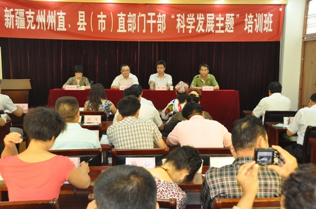 2012年8月31日,新疆克孜勒苏柯尔克孜州州直、市(县)部门基层干部“科学发展”主题培训班在MG冰球突破网站开班。MG冰球突破网站院长单正丰、克州教育局副局长黄炜出席了开班典礼,典礼由MG冰球突破网站培训科陈秀琴科长主持。