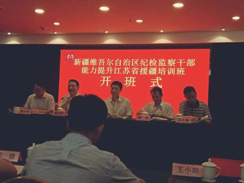 9月7日在这金秋送爽、硕果飘香的季节里,新疆维吾尔自治区纪检监察干部能力提升江苏省援疆培训班在MG冰球官网开班。江苏省纪委监委干部监督室主任黄华、江苏援疆克州指挥部党委副书记、纪委书记、克州副州长姜东、MG冰球突破网站党委副书记、纪委书记盛邦跃、新疆自治区纪委监委驻党委统战部纪检监察组副组长王小明、克州纪委副书记、监委副主任夏方坤出席开班式。此次培训班是新疆维吾尔自治区纪委监委主办,江苏援疆克州前方指挥部和克州纪委监委联合主办下,在江苏省纪委监委和江苏省援疆前方指挥部的积极支持协调下,由MG冰球突破网站承办的新疆纪检监察业务培训班,旨在进一步提升全疆纪检监察干部队伍履职能力,更好的适应纪检监察工作面临的新形势、新任务。